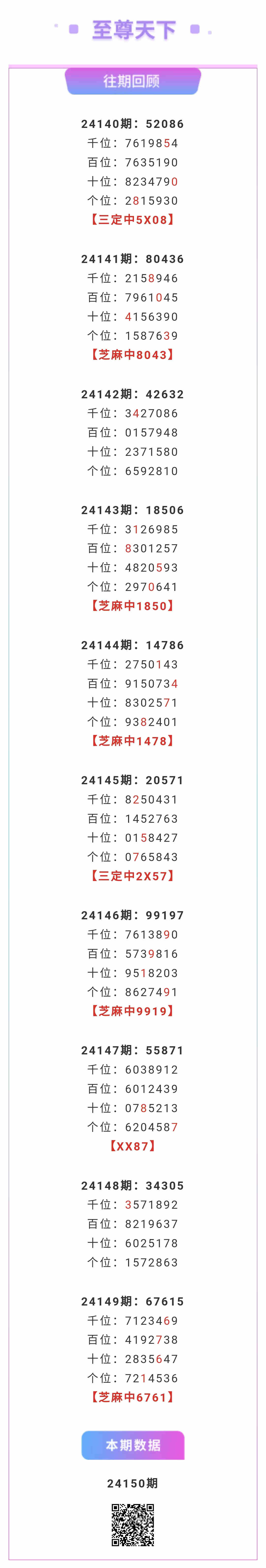 【排列五-24150期】本月圈中4次芝麻,芝麻近10中5;上期芝麻中6761