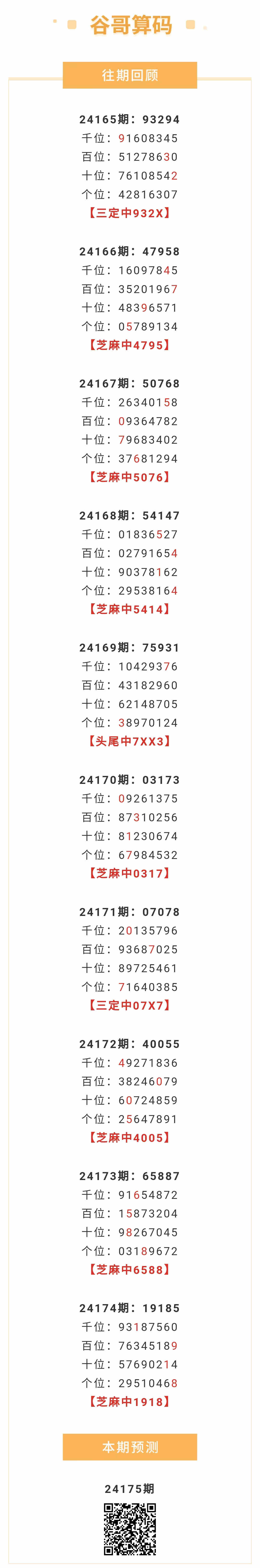 【排列五-24175期】上月圈中17次芝麻,芝麻近10中7;上期芝麻中1918