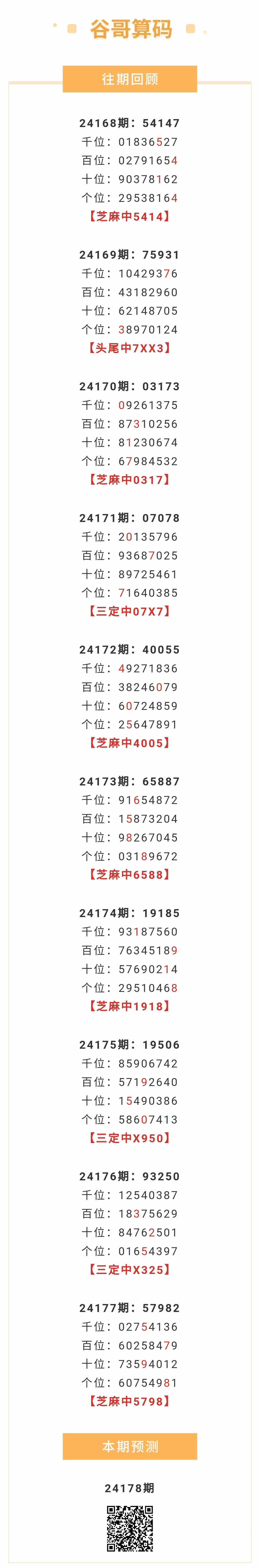 【排列五-24178期】本月圈中3次芝麻,芝麻近10中6;上期芝麻中5798