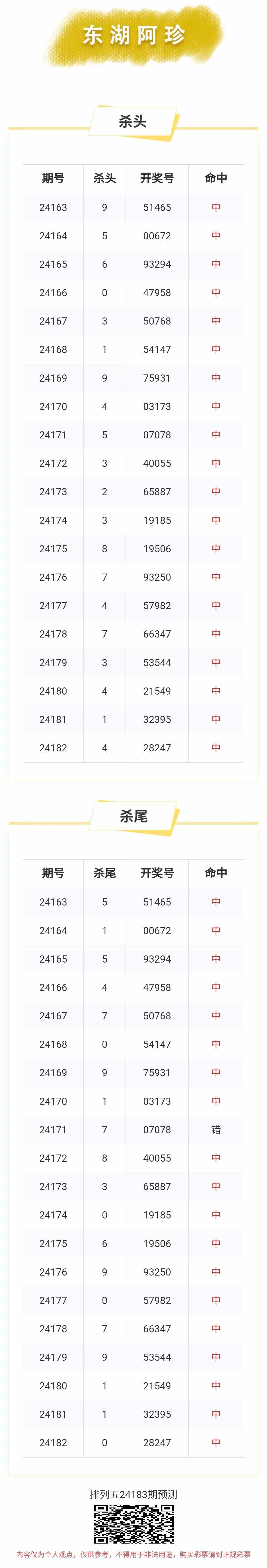 【排列五-24183期】本月圈中11次杀头尾;杀头尾10中10;上期杀头尾中,杀头尾11连中