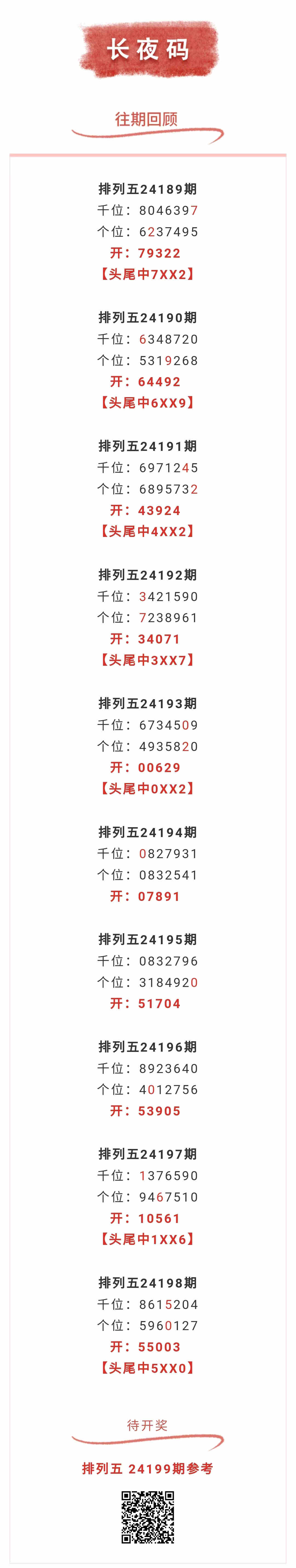 【排列五-24199期】本月圈中12次头尾,头尾近10中7;上期头尾中5XX0