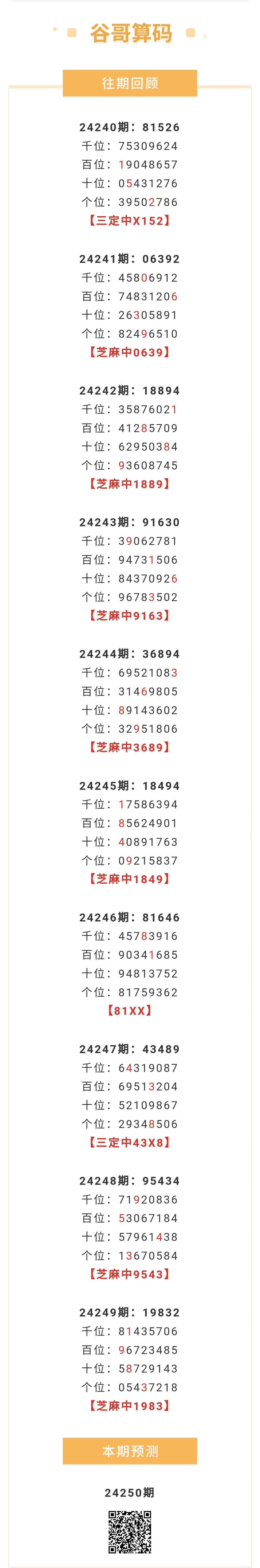 【排列五-24250期】本月圈中12次芝麻,芝麻近10中7;上期芝麻中1983