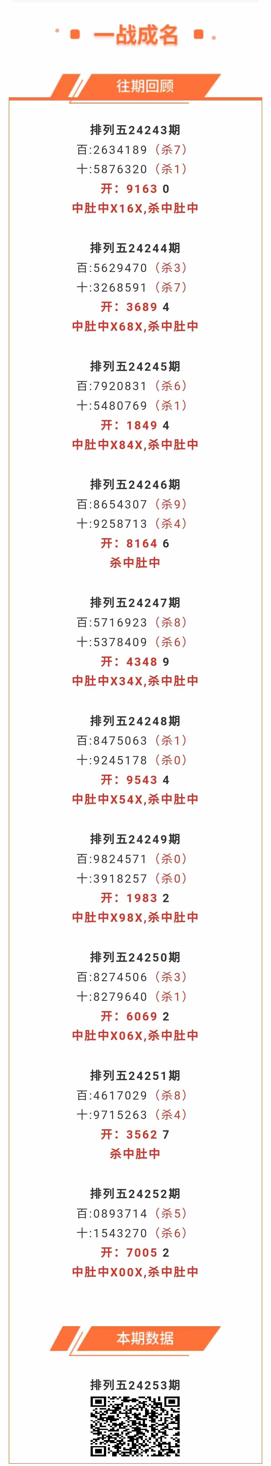 【排列五-24253期】本月圈中13次中肚,中肚近10中8;上期中肚中X00X,杀中肚中