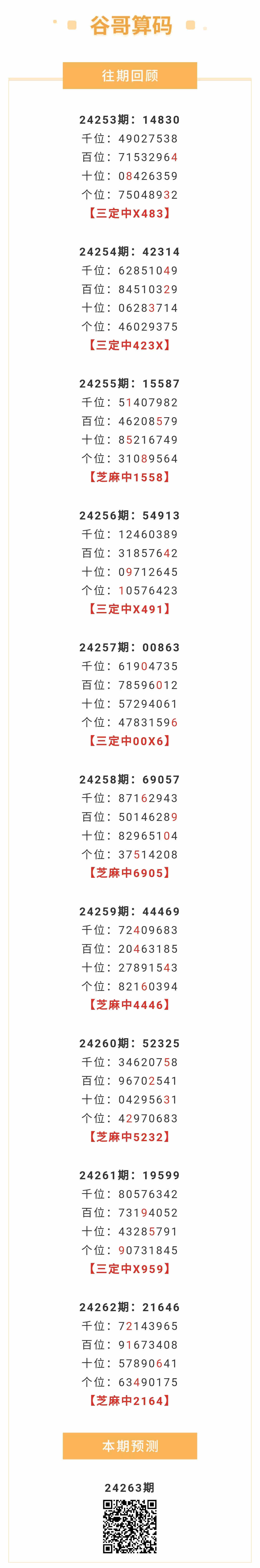 【排列五-24263期】本月圈中19次芝麻,芝麻近10中5;上期芝麻中2164