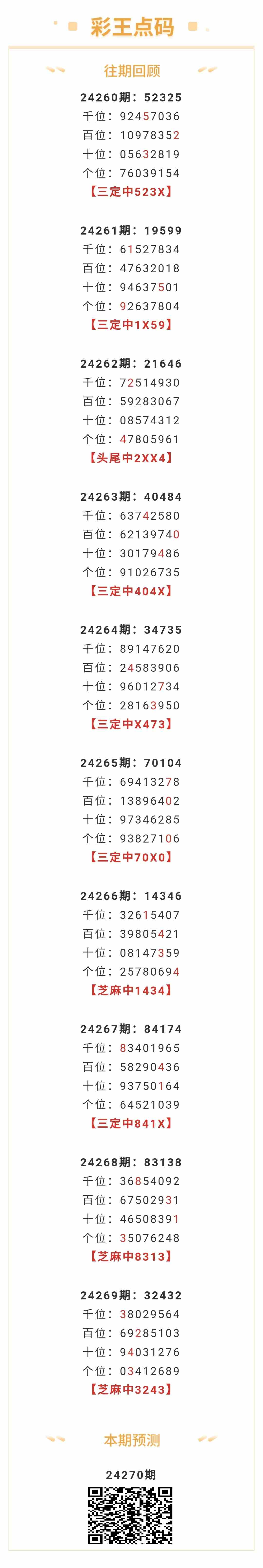 【排列五-24270期】本月圈中3次芝麻,芝麻近10中3;上期芝麻中3243