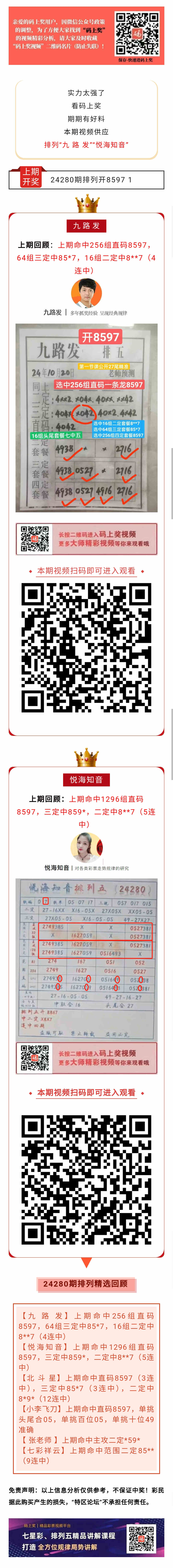 【码上奖视频】厉害!排列“九 路 发”上期命中256组直码8597!