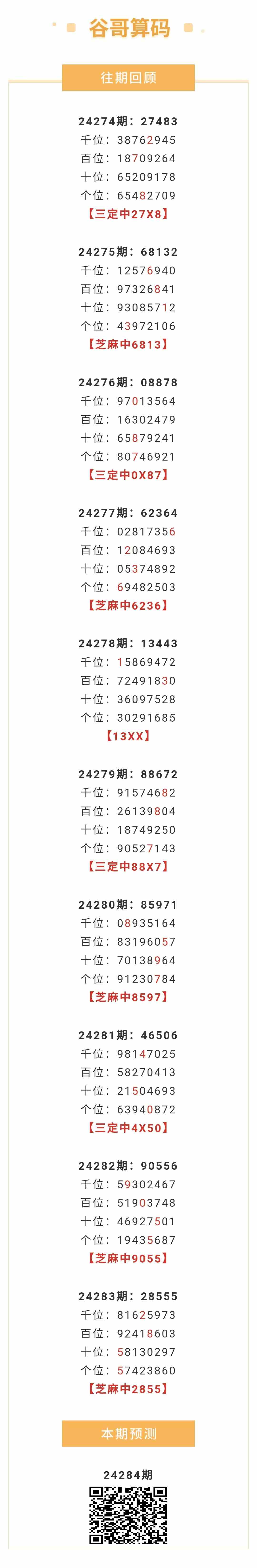 【排列五-24284期】本月圈中7次芝麻,芝麻近10中5;上期芝麻中2855