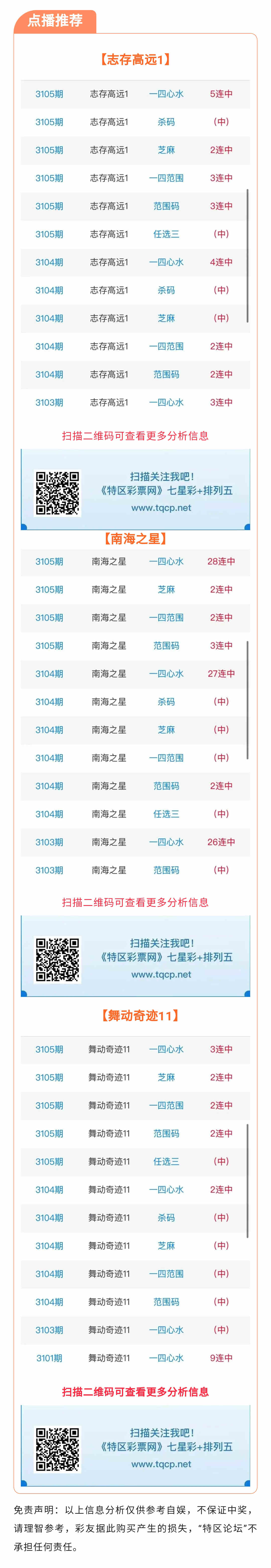 【七星彩讯】恭喜!点播厅“志存高远1”  圈中芝麻0316 ,2连中!