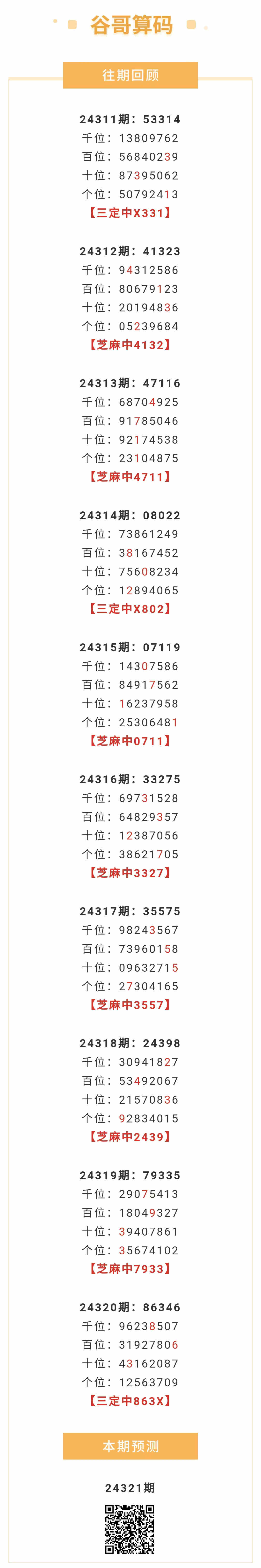 【排列五-24321期】本月圈中17次芝麻,芝麻近10中7;上期三定中863X