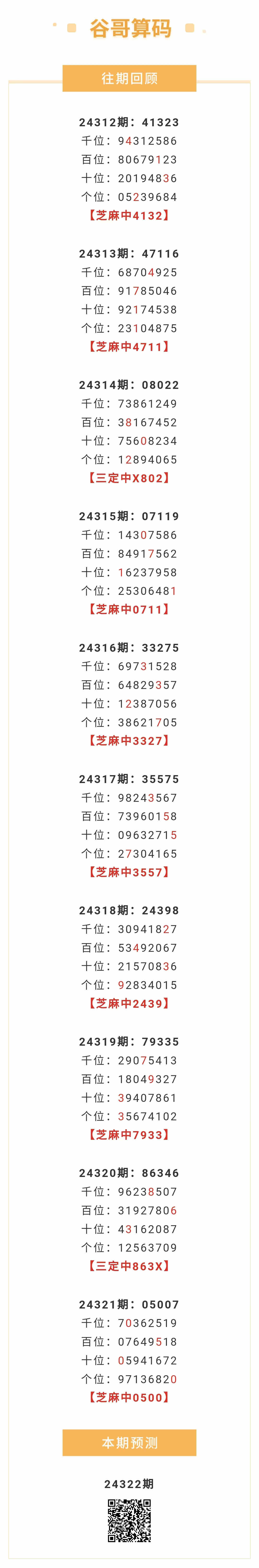 【排列五-24322期】上月圈中18次芝麻,芝麻近10中8;上期芝麻中0500