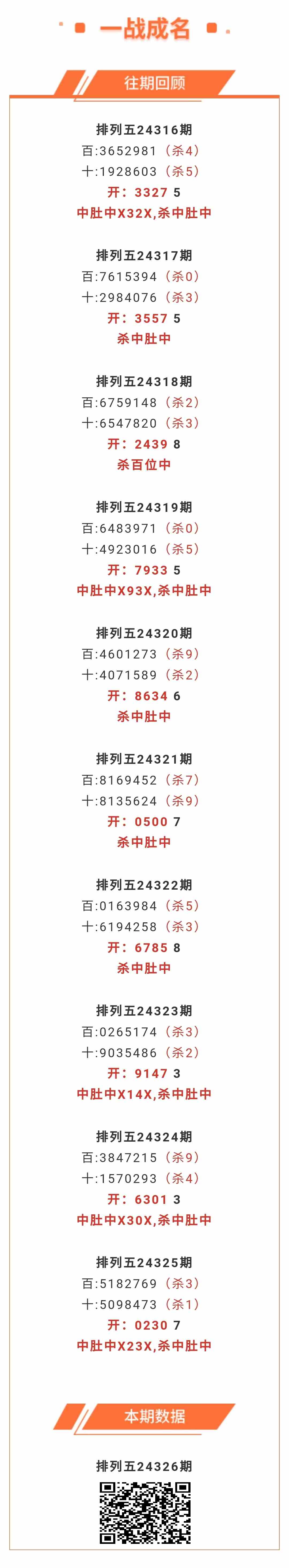 【排列五-24326期】本月圈中3次中肚,中肚近10中5;上期中肚中X23X,杀中肚中
