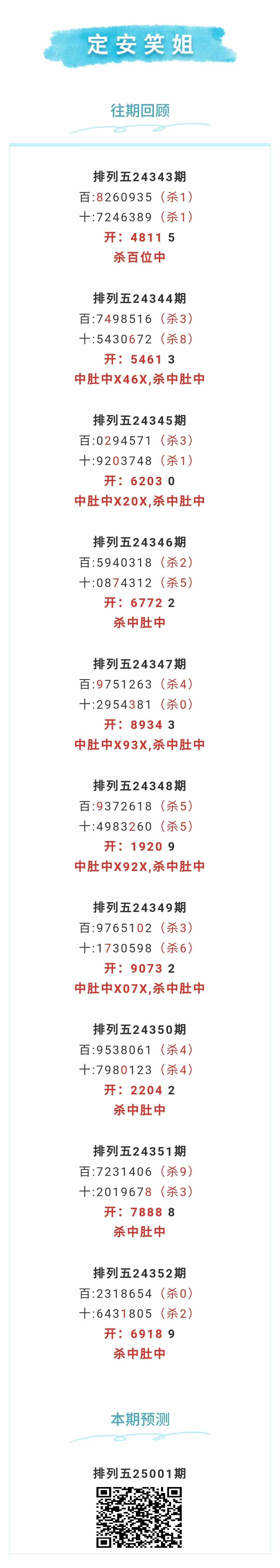 【排列五-25001期】上月圈中14次中肚,中肚近10中5;上期杀中肚中