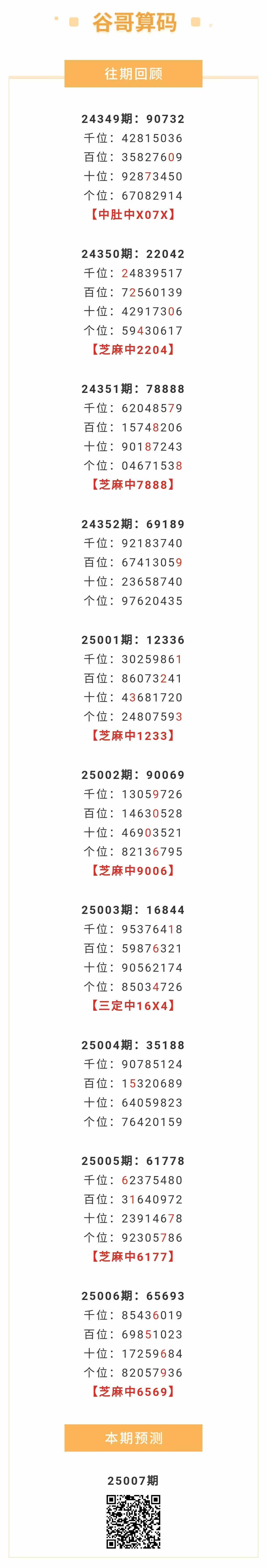 【排列五-25007期】本月圈中4次芝麻,芝麻近10中6;上期芝麻中6569