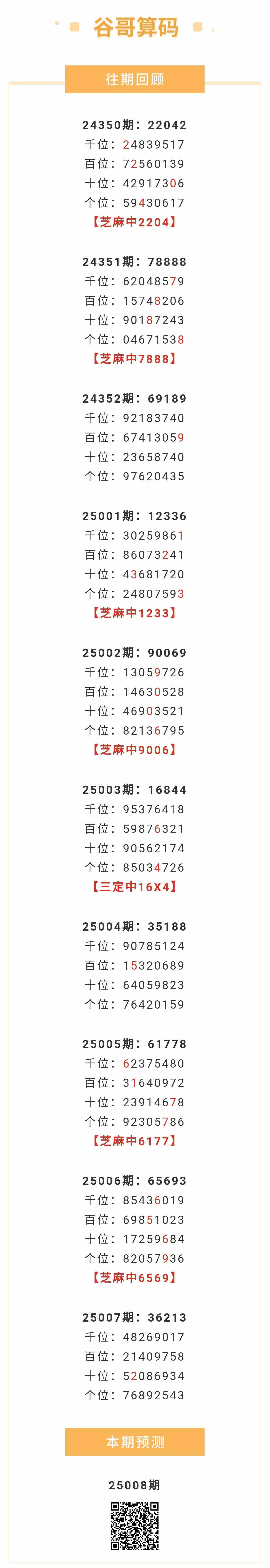 【排列五-25008期】本月圈中4次芝麻,芝麻近10中6
