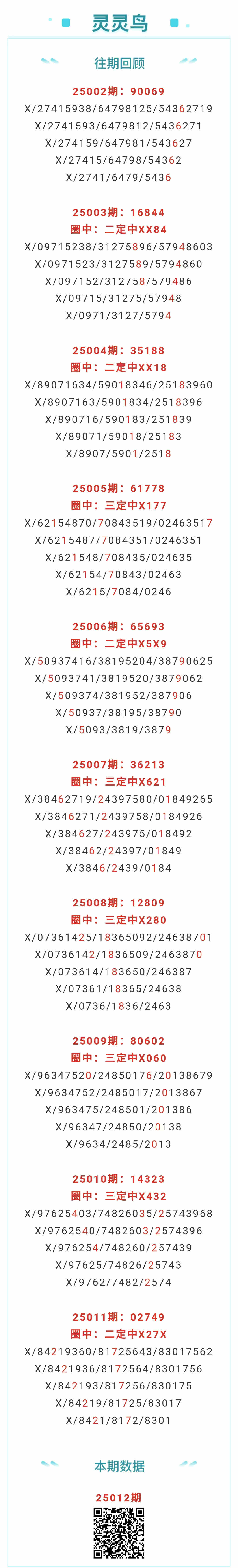 【排列五-25012期】本月圈中6次三定,三定近10中5;上期二定中X27X