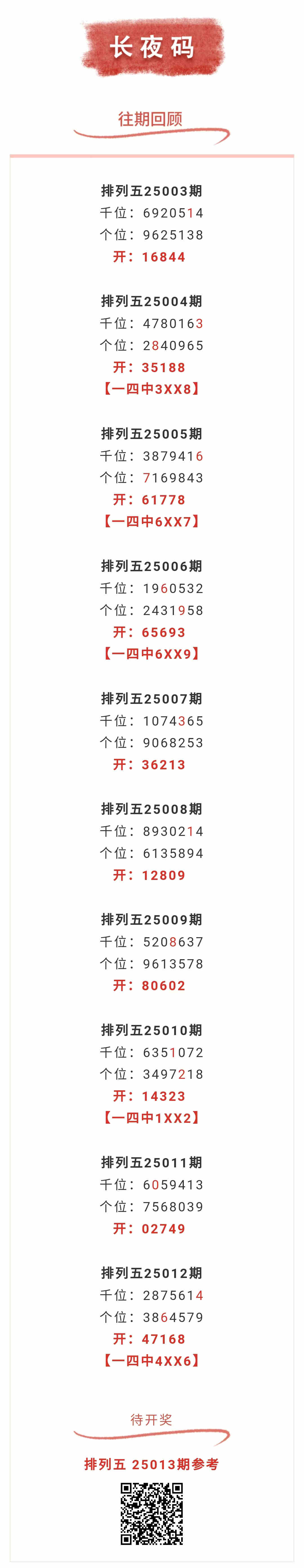 【排列五-25013期】本月圈中6次一四,一四近10中5;上期一四中4XX6