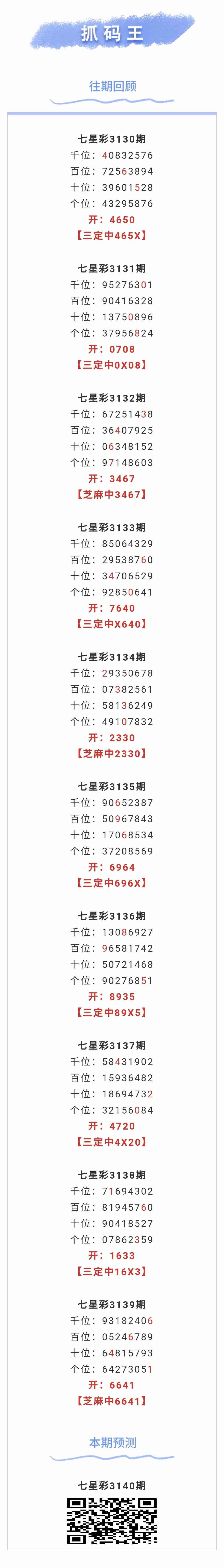 【七星彩-3140期】本月圈中2次芝麻,芝麻近10中3;上期芝麻中6641
