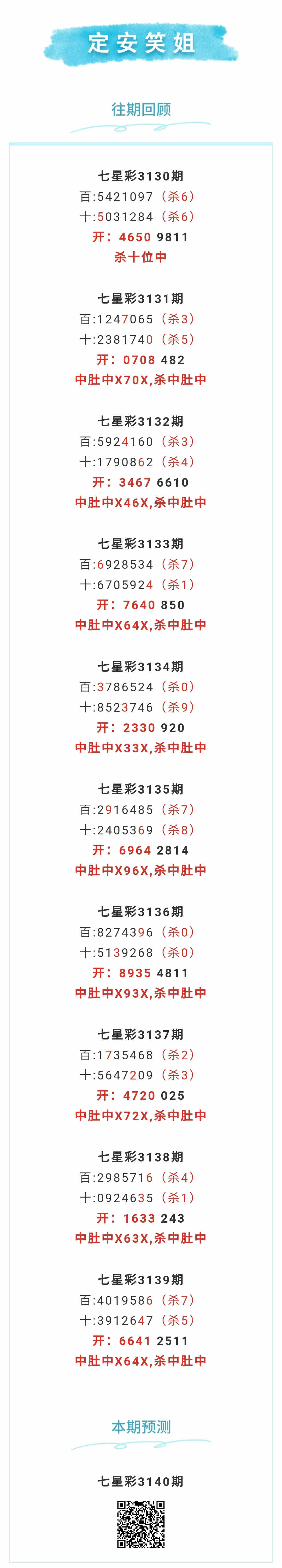 【七星彩-3140期】本月圈中6次中肚,中肚近10中9;上期中肚中X64X