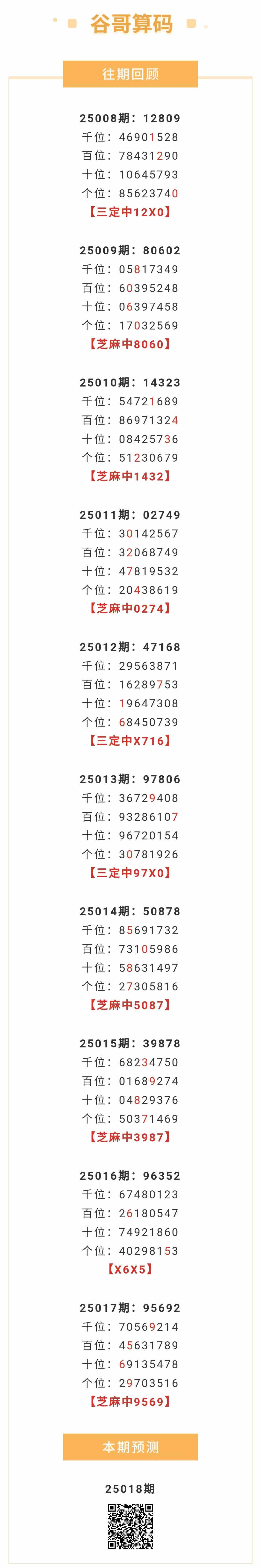 【排列五-25018期】本月圈中10次芝麻,芝麻近10中6;上期芝麻中9569