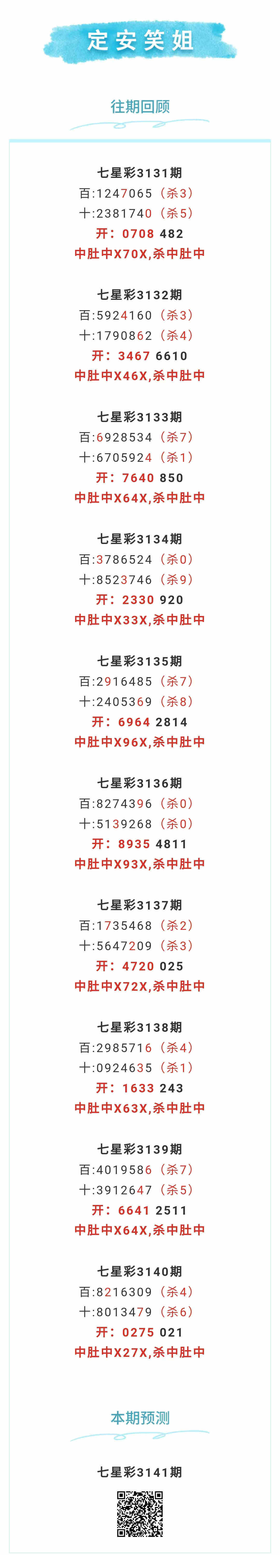 【七星彩-3141期】本月圈中7次中肚,中肚近10中10;上期中肚中X27X