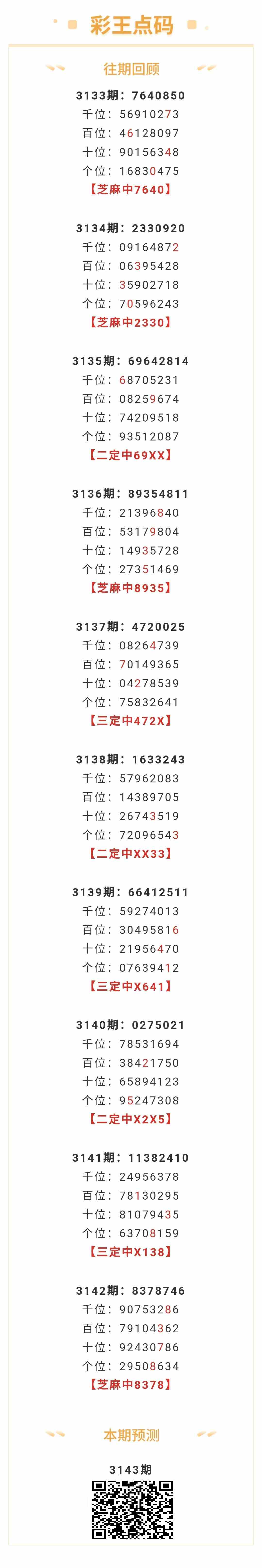 【七星彩-3143期】本月圈中3次芝麻,芝麻近10中4;上期芝麻中8378