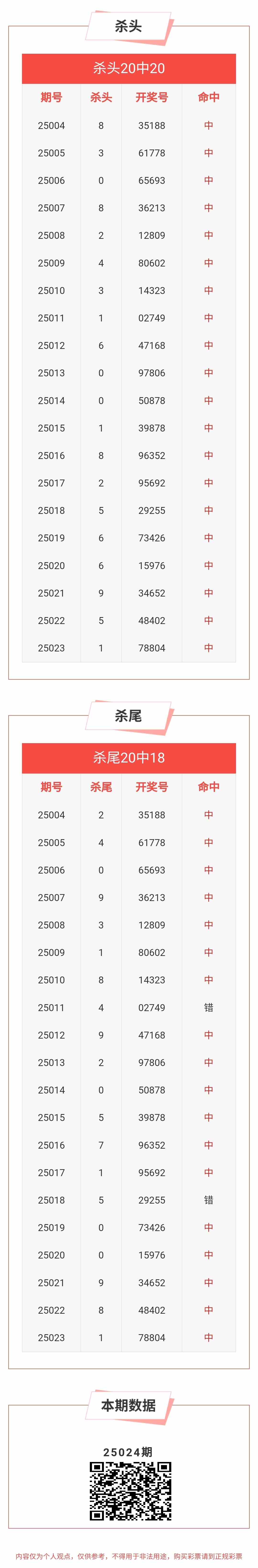 【排列五-25024期】本月圈中21次杀一四,杀一四近10中9;上期杀一四中