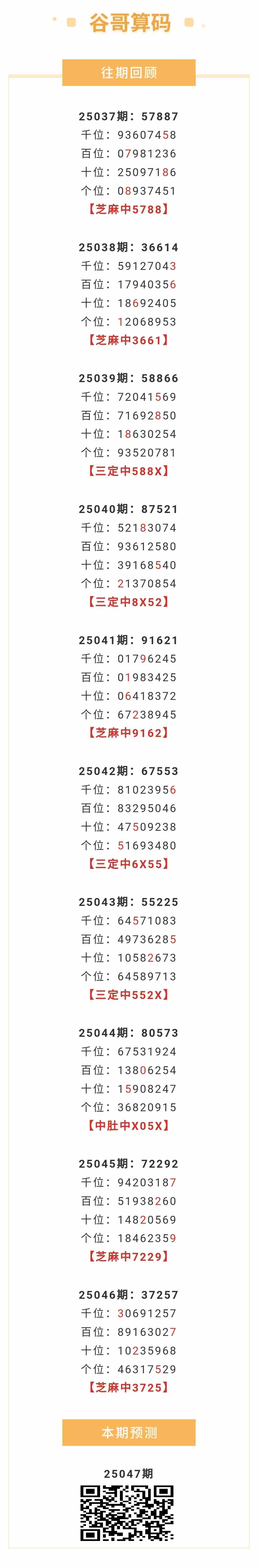 【排列五-25047期】本月圈中8次芝麻,芝麻近10中5;上期芝麻中3725