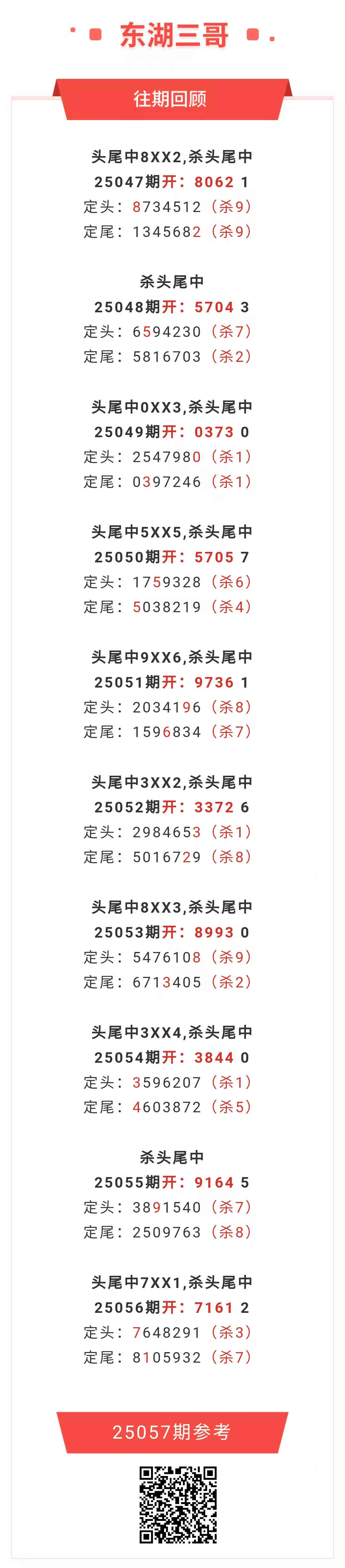 【排列五-25057期】本月圈中6次一四,一四近10中8;上期一四中7XX1