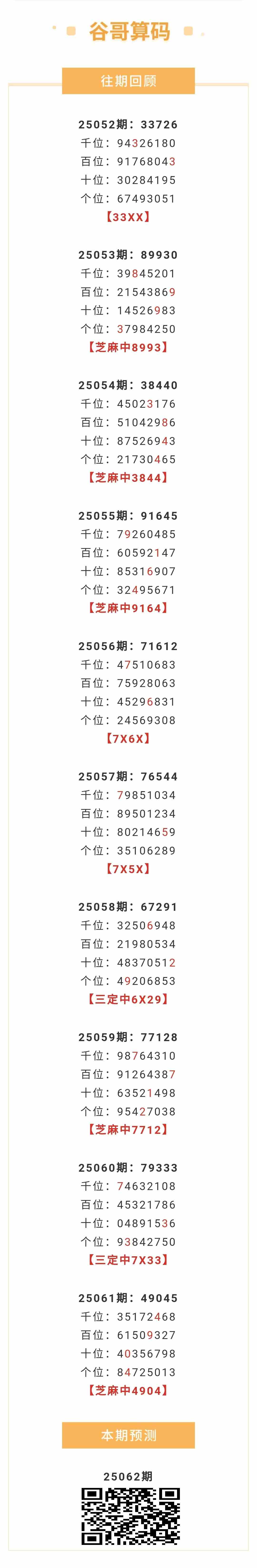 【排列五-25062期】本月圈中6次芝麻,芝麻近10中5;上期芝麻中4904