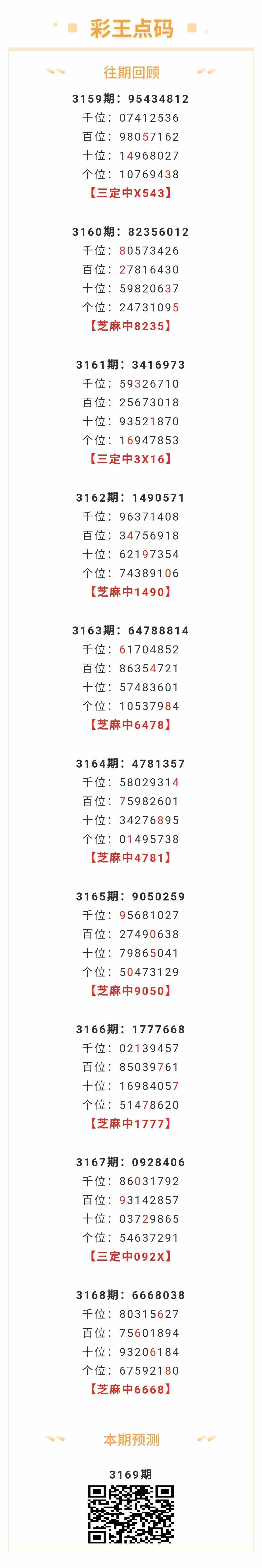 【七星彩-3169期】本月圈中1次芝麻,芝麻近10中7;上期芝麻中6668