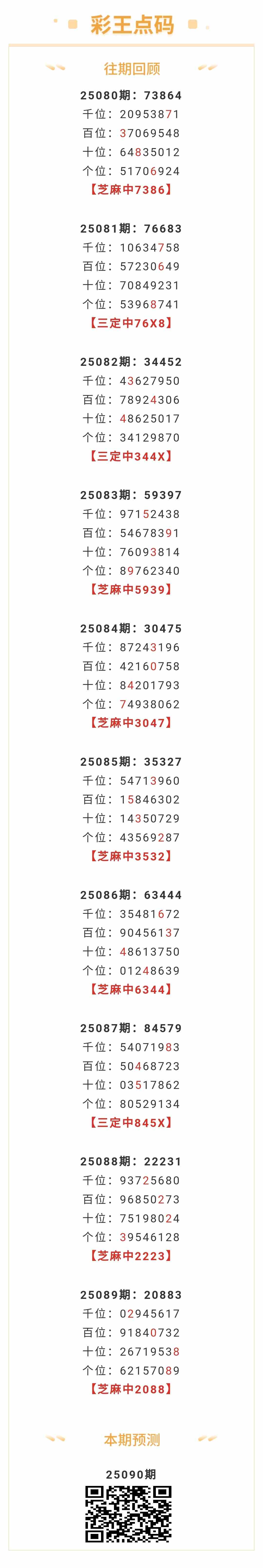 【排列五-25090期】本月圈中6次芝麻,芝麻近10中7;上期芝麻中2088