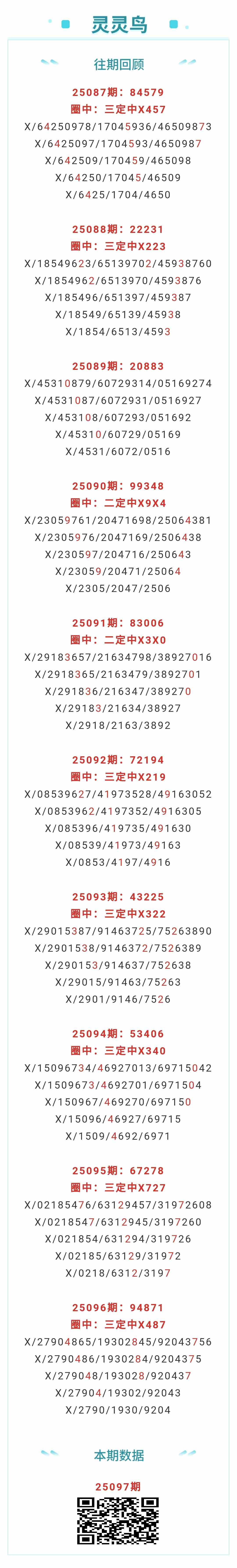 【排列五-25097期】本月圈中8次三定,三定近10中7;上期三定中X487