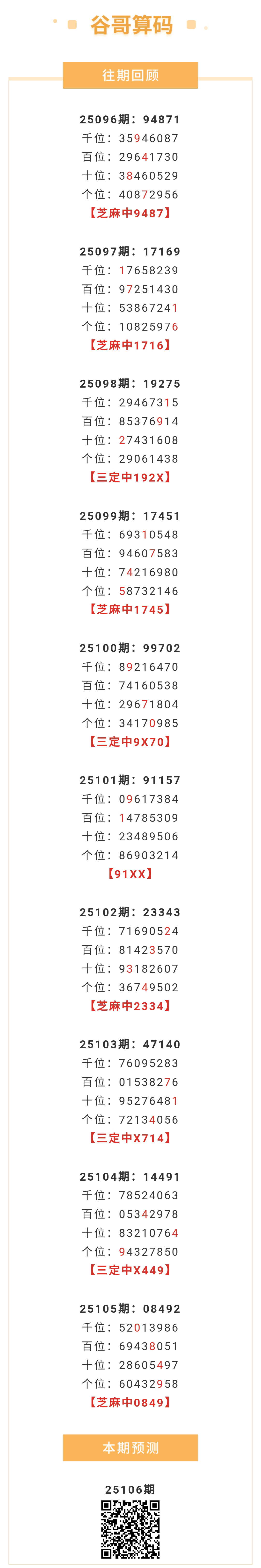 【排列五-25106期】本月圈中10次芝麻,芝麻近10中5;上期芝麻中0849