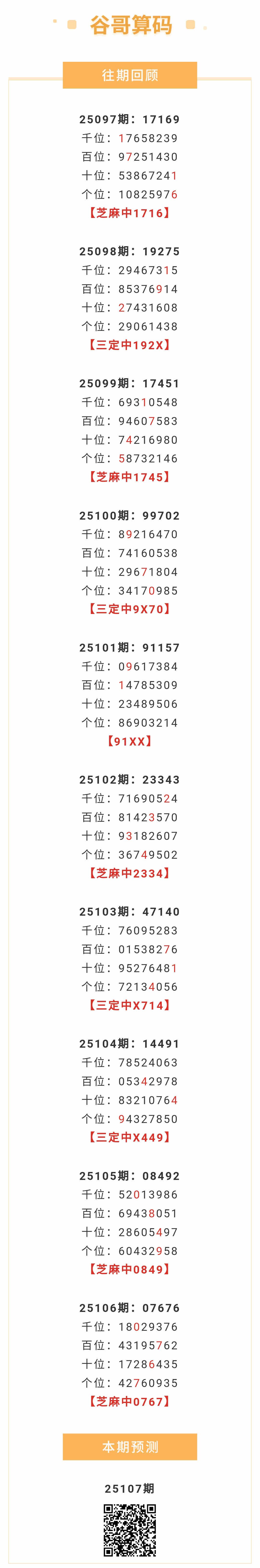 【排列五-25107期】本月圈中11次芝麻,芝麻近10中5;上期芝麻中0767