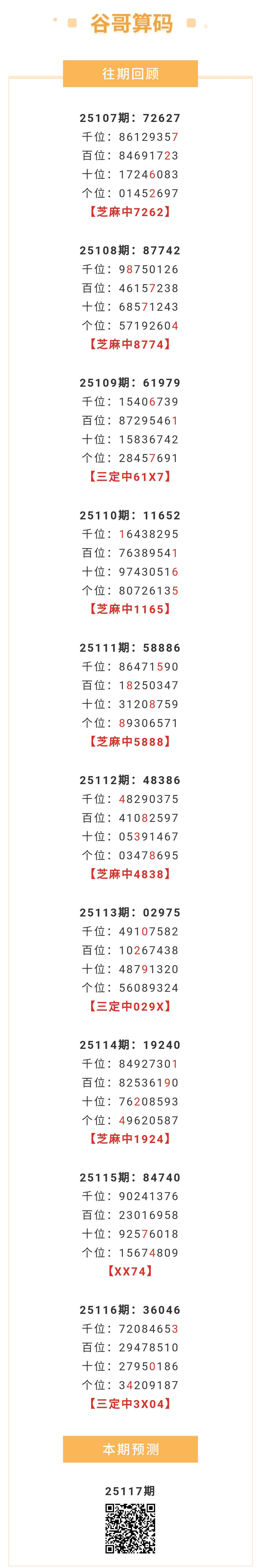 【排列五-25117期】本月圈中3次芝麻,芝麻近10中6;上期三定中3X04