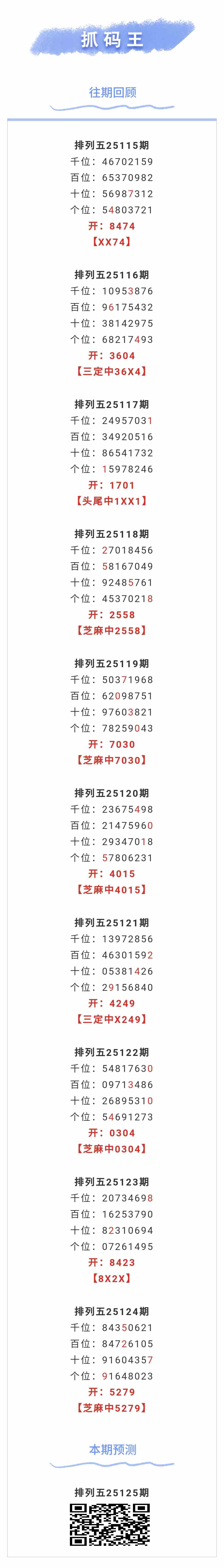 【排列五-25125期】本月圈中6次芝麻,芝麻近10中5;上期芝麻中5279