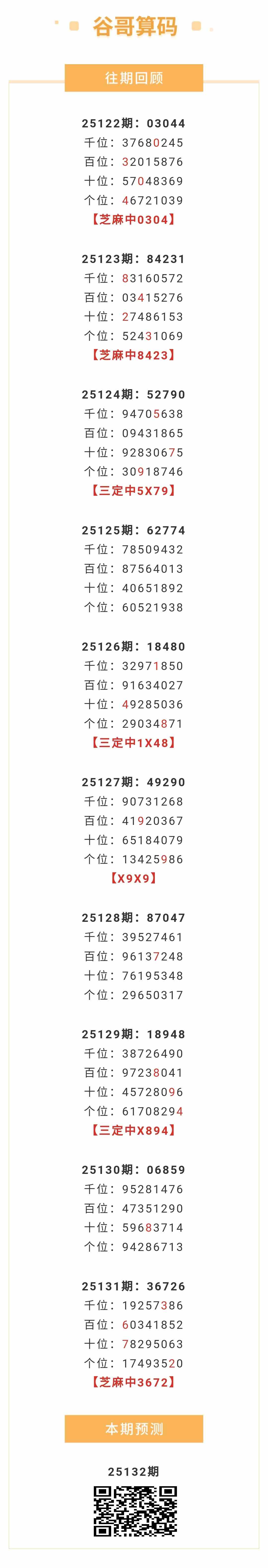 【排列五-25132期】本月圈中9次芝麻,芝麻近10中3;上期芝麻中3672