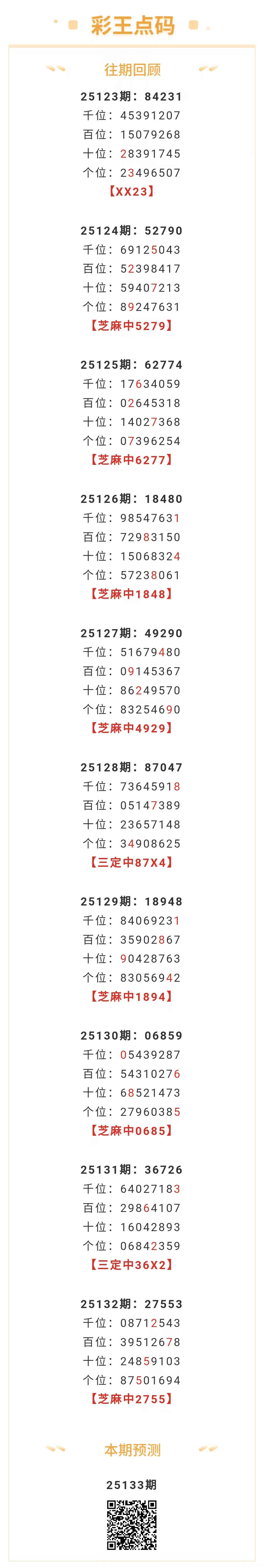 【排列五-25133期】本月圈中9次芝麻,芝麻近10中7;上期芝麻中2755