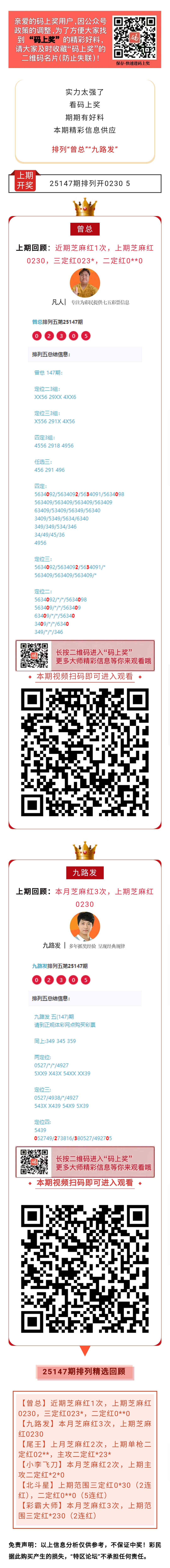 【码上奖】排列“曾总”近期芝麻红1次,上期芝麻红0230!