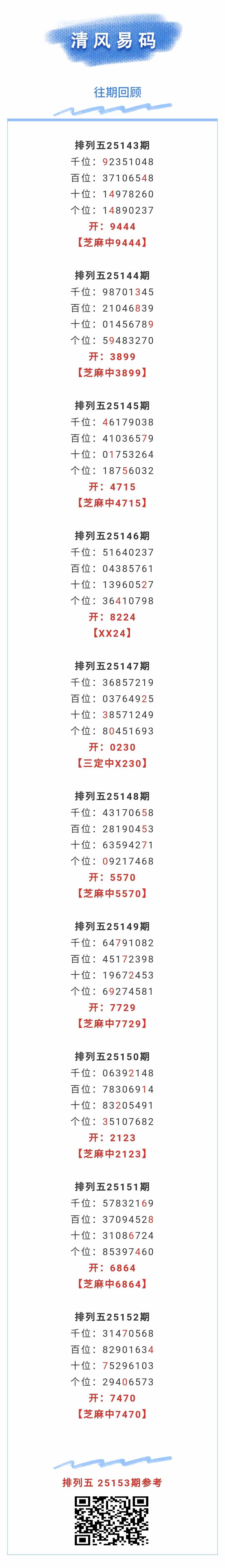 【排列五-25153期】本月圈中9次芝麻,芝麻近10中8;上期芝麻中7470,本期精益求精!