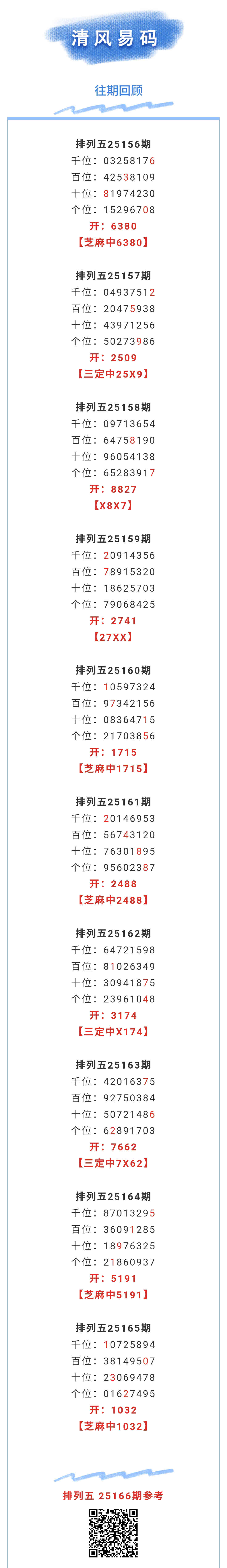 【排列五-166期】本月圈中14次芝麻,芝麻近10中5;上期芝麻中1032