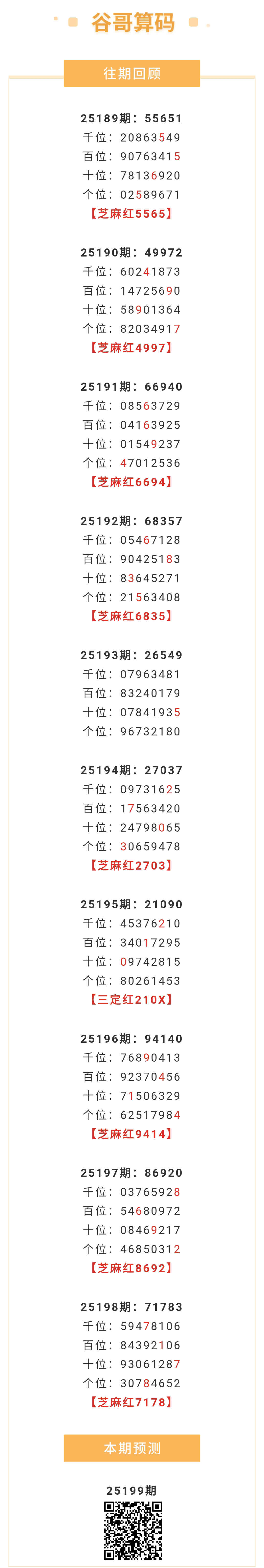 【排列五-199期】本月圈红15次芝麻,芝麻近10红8;上期芝麻红7178