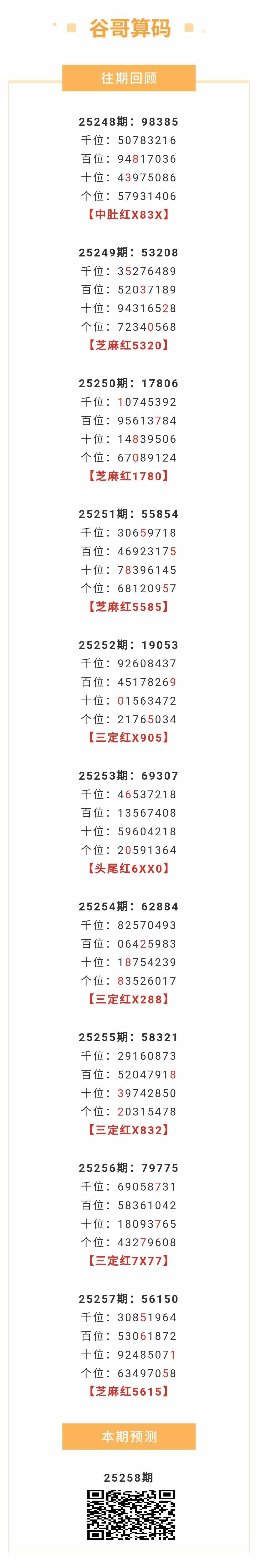 【排列五-258期】本月圈红11次芝麻,芝麻近10红4;上期芝麻红5615