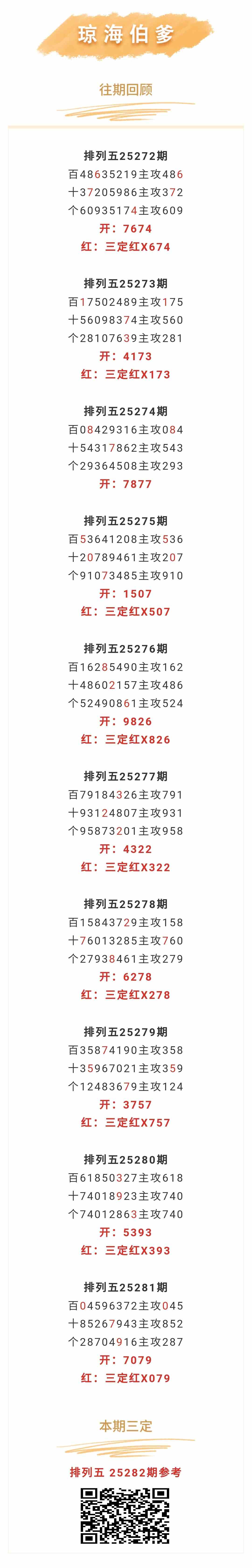 【排列五-282期】三定7连红,本月圈红13次三定,三定近10红9;上期三定红X079