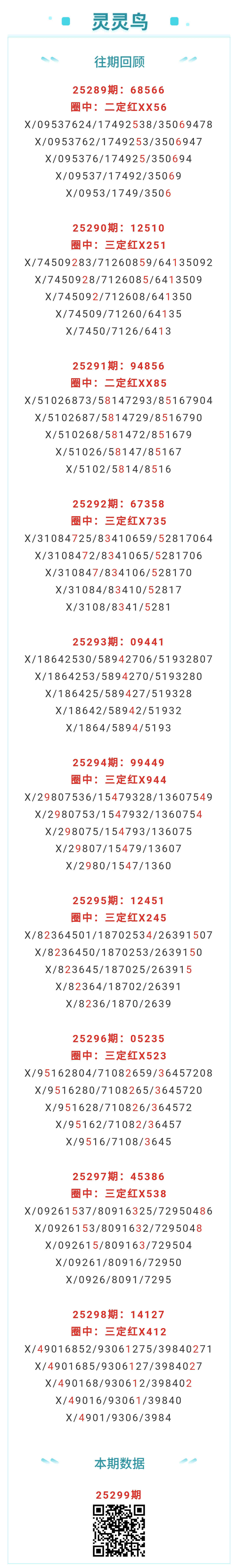 【排列五-299期】三定5连红!本月圈红6次三定,三定近10红7;上期三定红X412