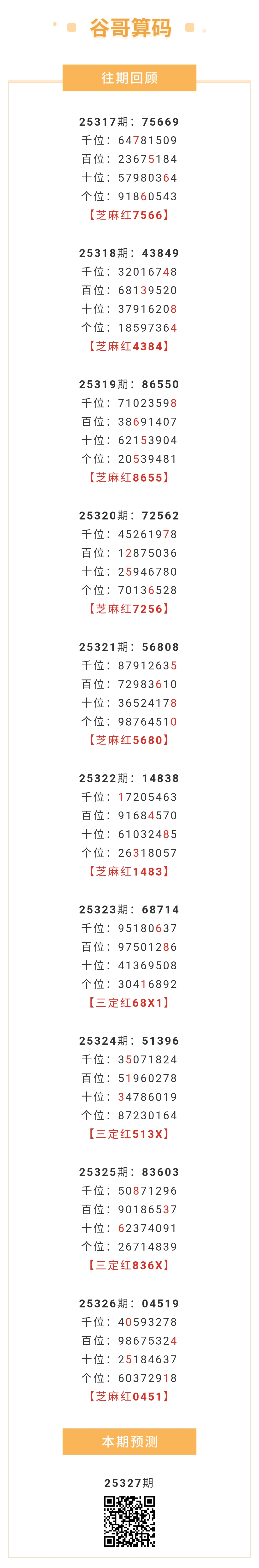 【排列五-25327期】本月圈红3次芝麻,芝麻近10红7;上期芝麻红0451