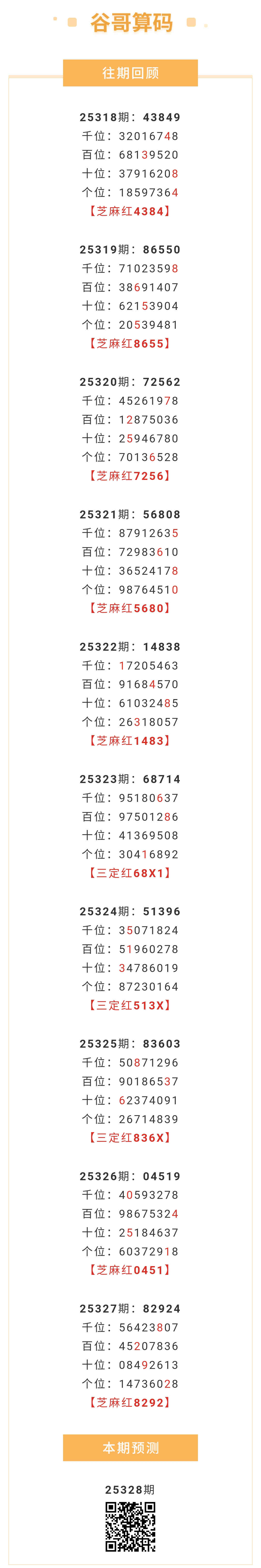 【排列五-328期】芝麻2连红!本月圈红4次芝麻,芝麻近10红7;上期芝麻红8292