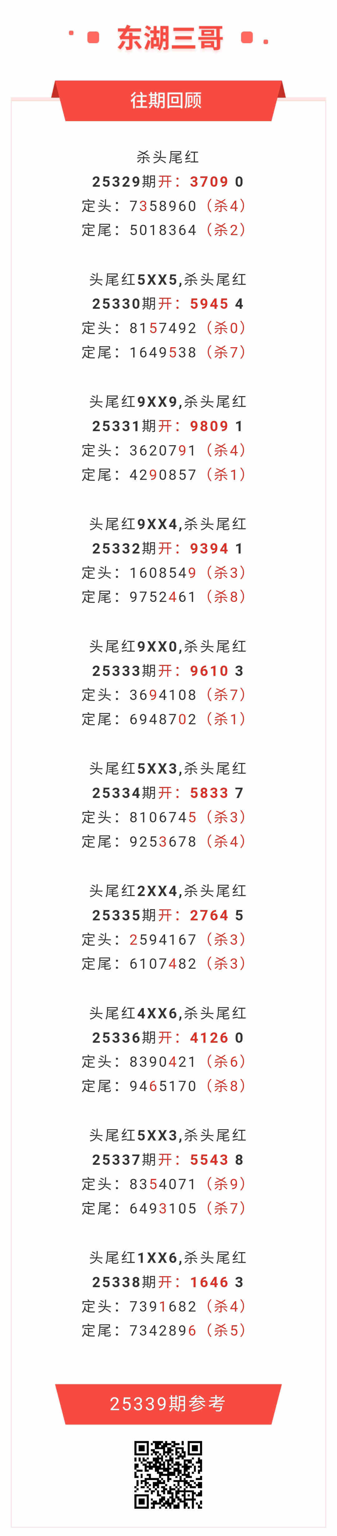 【排列五-339期】一四9连红!本月圈红14次一四,一四近10红9;上期一四红1XX6