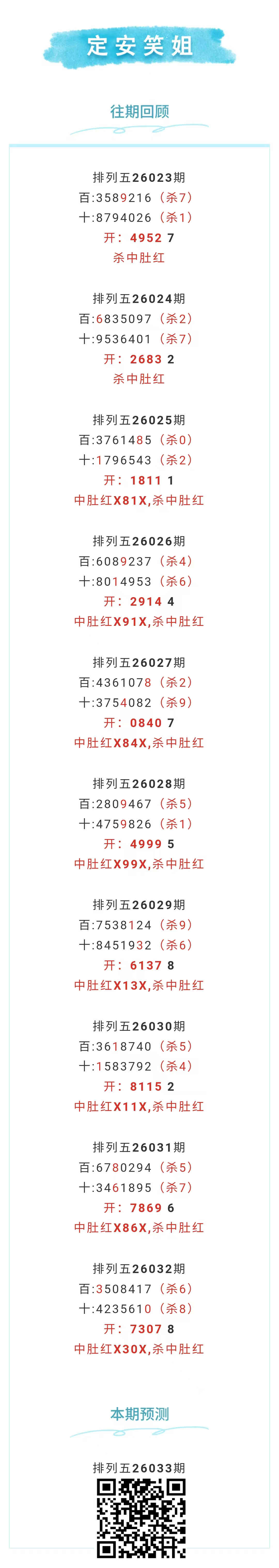 【排列五-033期】上月圈红17次中肚,中肚近10红8;上期中肚红X30X,杀中肚红