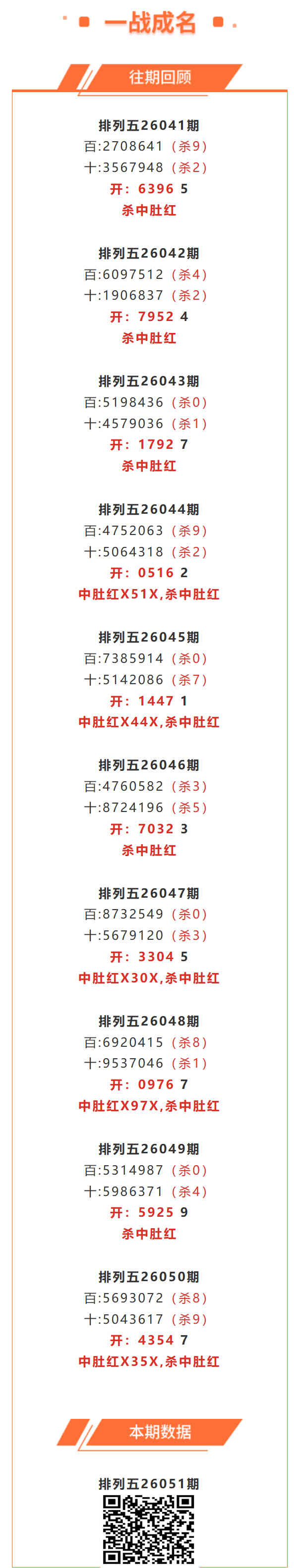 【排列五-051期】杀中肚17连红!本月圈红1次中肚,中肚近10红5;上期中肚红X35X,杀中